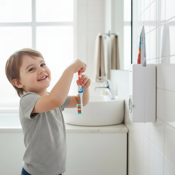 Higiene y comodidad al alcance de tu mano. El Dispensador Automático simplifica tu rutina diaria de cepillado, proporcionando la cantidad perfecta de pasta dental sin ensuciar tus manos. Su diseño elegante y moderno se adapta a cualquier baño y es fácil de instalar y usar, aportando limpieza y practicidad al mismo tiempo.